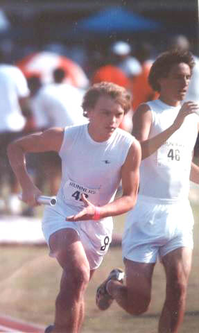 There were other exploits, like the time he won the county meet with a cast on his arm. Many of his teammates referred to him as “the fastest white boy I know.” Once, in high school, a huge menacing-looking boy loomed over him after a track meet only to say, “I’ve been coming out to watch you run since you were in the track club when we were in fifth grade. I’m your biggest fan.” But that race, way back in middle school, that was the stuff of legends.